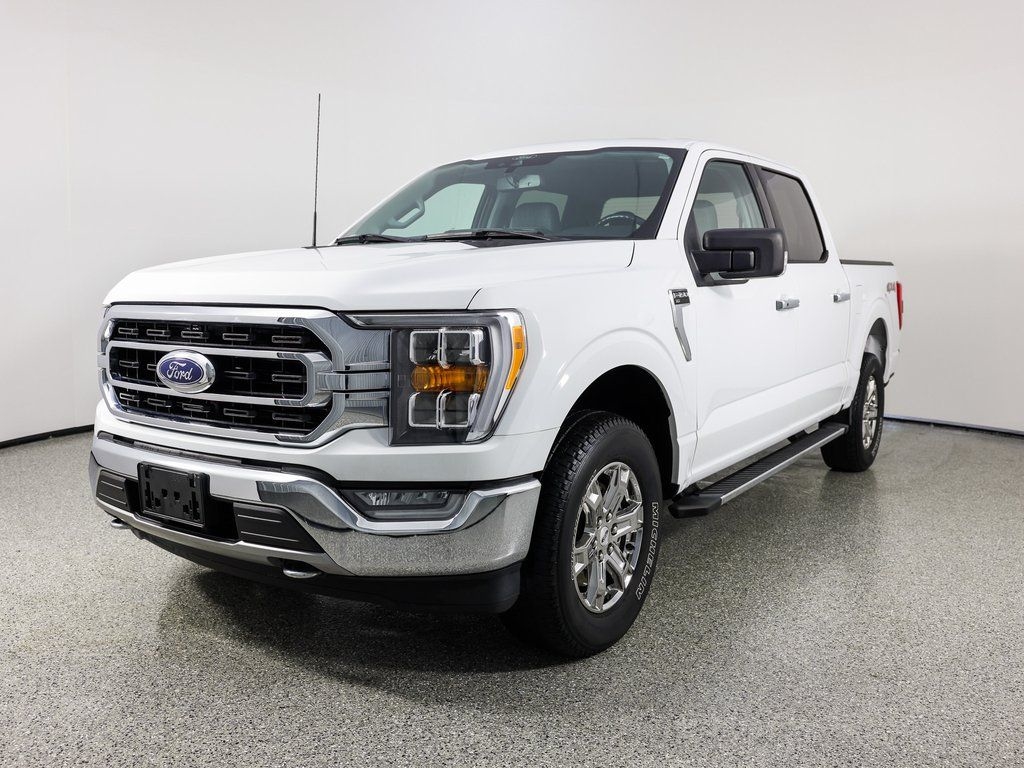 4WD, 2-Bar Style Grille w/Chrome 2 Minor Bars, Chrome Door & Tailgate Handles w/Body-Color Bezel, Class IV Trailer Hitch Receiver, Front wheel independent suspension, GVWR: 6,600 lbs Payload Package, Integrated Trailer Brake Controller, Radio: AM/FM SiriusXM w/360L, Remote keyless entry, Security system, Split folding rear seat, Wheels: 18" Chrome-Like PVD, XLT Chrome Appearance Package. New Price! CARFAX One-Owner. Oxford White 2021 Ford F-150 XLT 4WD 10-Speed Automatic 2.7L V6 EcoBoost