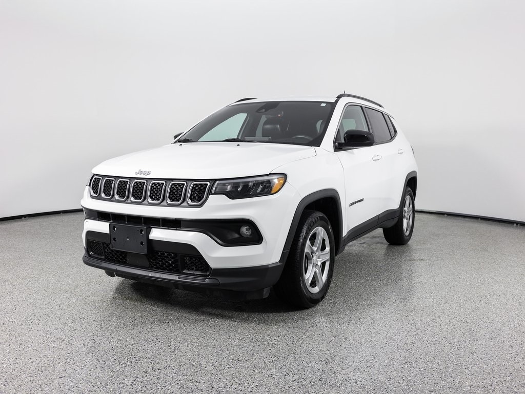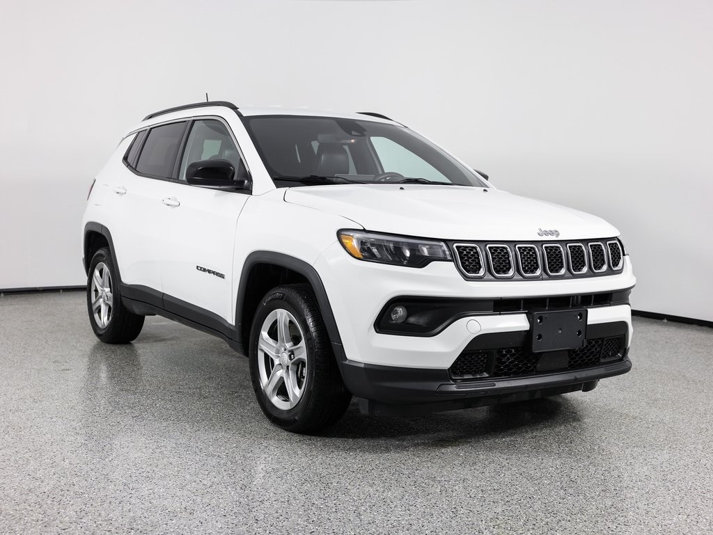 4WD, AM/FM radio: SiriusXM, Front Bucket Seats, Front fog lights, Fully automatic headlights, Heated door mirrors, Remote keyless entry, Security system, Steering wheel mounted audio controls. Clean CARFAX. Bright White Clearcoat 2023 Jeep Compass Latitude 4WD 8-Speed Automatic 2.0L I4 DOHC