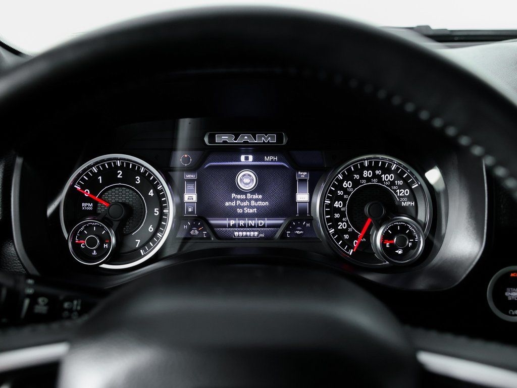 Air Conditioning ATC w/Dual Zone Control, Anti-Spin Differential Rear Axle, Apple CarPlay, Auto-Dimming Exterior Driver Mirror, Big Horn Level 2 Equipment Group, Bluetooth Handsfree Phone & Audio, Body Color Rear Bumper w/Step Pads, Class IV Receiver Hitch, Dual Exhaust w/Black Tips, Heated door mirrors, Heated Front Seats, Heated Steering Wheel, Night Edition, Power Adjustable Pedals, Power-Folding Mirrors, Radio: Uconnect 5 W w/8.4" Display, Rear Power Sliding Window, Remote Start System, USB Host Flip, Wheels: 20" x 9.0" Premium Paint/Polished. CARFAX One-Owner. Clean CARFAX. Diamond Black Crystal Pearlcoat 2022 Ram 1500 Big Horn/Lone Star 4WD 8-Speed Automatic 3.6L V6 24V VVT