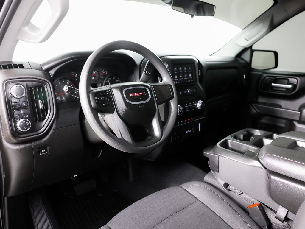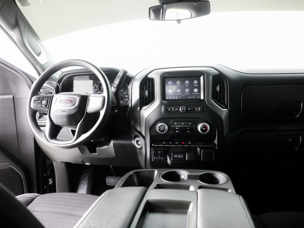 10-Speed Automatic, 4WD, Black Cloth, Body Color Lower Front Bumper, Body Color Upper Grille, Color-Keyed Carpeting Floor Covering, Convenience Package, Cruise Control, Deep-Tinted Glass, Electric Rear-Window Defogger, EZ Lift Power Lock & Release Tailgate, Front Rubberized-Vinyl Floor Mats, Graphite Edition, Heated Power-Adjustable Outside Mirrors, High Capacity Suspension Package, Hitch Guidance, LED Cargo Area Lighting, Pro Value Package, Rear Body-Color Bumper, Rear Rubberized-Vinyl Floor Mats, Remote Vehicle Starter System, SiriusXM, Theft Deterrent System (Unauthorized Entry), Trailering Package, Wheels: 20" x 9" High Gloss Black Painted Aluminum. CARFAX One-Owner. Clean CARFAX. Onyx Black 2024 GMC Sierra 1500 Pro 4WD 10-Speed Automatic EcoTec3 5.3L V8